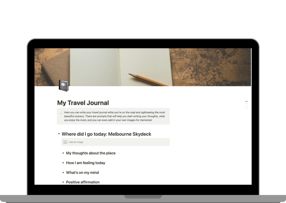 - You can easily access the Notion Travel Template anytime and anywhere on your desktop, tablet, and iPhone/Android via the web or application (download the Notion App from your app store).